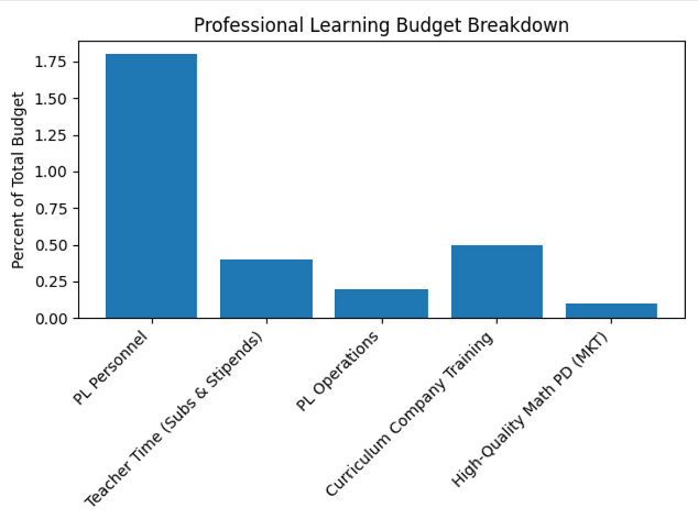 Figure 2. Breakdown of professional learning spending within a typical district. Only a small fraction supports sustained, content-focused mathematics professional development.