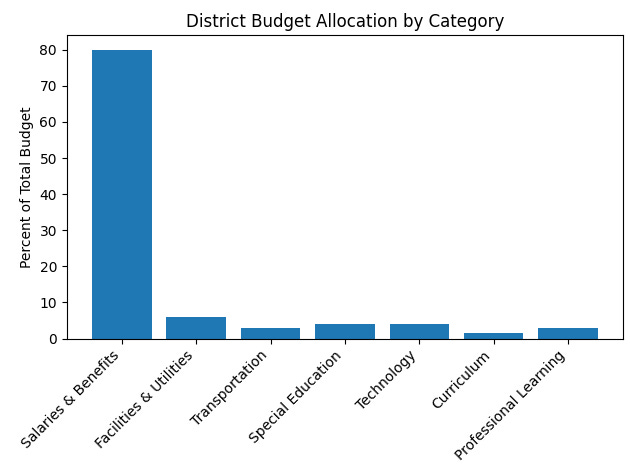 Most districts spend 80-85% of their overall budgets on salaries and benefits, leaving just 15-20% for transportation, utilities, technology, curriculum, assessments, and professional learning (Education Resource Strategies, 2020). Within that discretionary portion, curriculum and PD together account for only 3 to 6% of total spending (Center for American Progress, 2018). When annualized over adoption cycles, math curriculum often represents just $7-$25 per student per year, while math-specific PD averages $20-$60 per student (Learning Policy Institute, 2017).